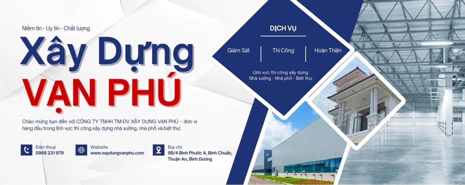 Chào mừng bạn đến với CÔNG TY TNHH TM-DV XÂY DỰNG VẠN PHÚ – đơn vị hàng đầu trong lĩnh vực thi công xây dựng nhà xưởng, nhà phố và biệt thự. Với bề dày kinh nghiệm cùng đội ngũ chuyên nghiệp, chúng tôi tự hào mang đến những công trình chất lượng cao, đáp ứng mọi yêu cầu của khách hàng từ thiết kế đến thi công hoàn thiện.